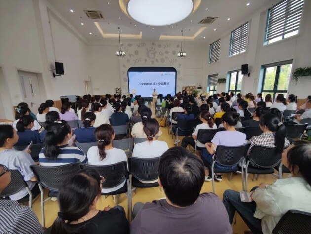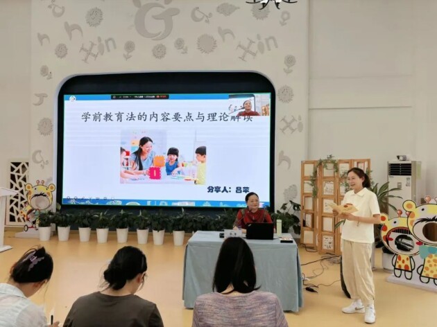 在学前教育宣传月来临之际,为助力全体教职工深入领会这部重要法规的内涵要义,杭州市丁信幼儿园于 5 月 16 日下午开展《学前教育法》专题培训活动。园所特邀浙江外国语学院博士生导师吕苹教授带来专题讲座,为大家呈现了一场知识与智慧的盛宴。本次活动由幼儿园办公室主任周平平老师主持。