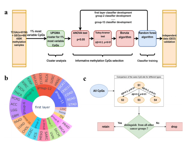 传统的肿瘤筛查、诊断和治疗方法在性能、成本等方面存在一定局限性。近日,吉因加联合中山大学医学院开发的肿瘤DNA甲基化层次聚类溯源算法(CHCT)在国际知名生信期刊BMC Bioinformatics 上发表。该算法利用机器学习和公开数据库分析,证实其对肿瘤溯源准确性高达94.46%,且能够根据甲基化分子图谱精准预测肿瘤发生部位,该方法学可迁移应用于癌症早筛、器官损伤等场景,有潜力成为一种精准、实用的甲基化分析底层算法。