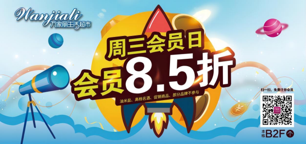 快乐暑假,万家丽生活超市大放“价”,会员福利拉满,夏日嗨购正当时!万家丽生活超市是万家丽集团旗下精品生活超市,位于万家丽国际MALL地铁层(B2层),地铁2、5号线直达卖场,每周周三会员享全场8.5折(油米盐、高档名酒、特价商品不参与),消费满额尊享免费停车,更有不定期好礼相送,更多心动好礼尽在万家丽生活超市!