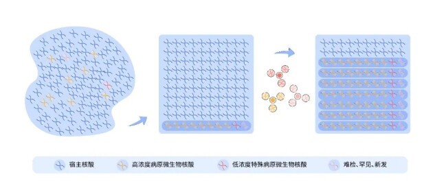 吉因加通过高性能自研专利算法,进行两重序列比对;一重比对,通过大数据库进行撒网,确保病原快速全面报出;二重比对,通过小数据库进行捞鱼,精准鉴别目标病原。