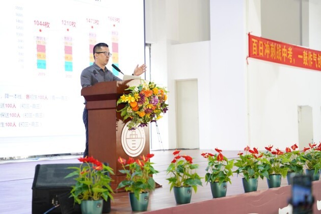 郭炎军老师以《倍道兼进!新高考、新强基背景下的名校进阶之路》为题,详细讲解了“拔尖学生的名校进阶之路”“拔尖学生品质的形成之路”“拔尖学生的联合培养之路”。通过郭炎军老师的讲座,很多家长清晰了解到,通往名校途径多达20余种——高考、强基、艺术、体育、军事、公安、其他途径、名校……融合培养,均是进阶之路。郭炎军老师以“与高人为伍,我们能登上巅峰!”结束讲座,赢得会场雷鸣般地掌声。
