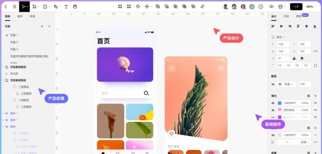 Pixso和国外软件对比最大的区别是在于工作协同方面。以往使用国外设计工具,如果除了跟产品经理还有研发需要日常重复沟通以外,想实现多人在线,或者切图,又或者版本管理,都只能靠依赖插件进行。但插件使用步骤也相对更复杂,导出也容易出错 。